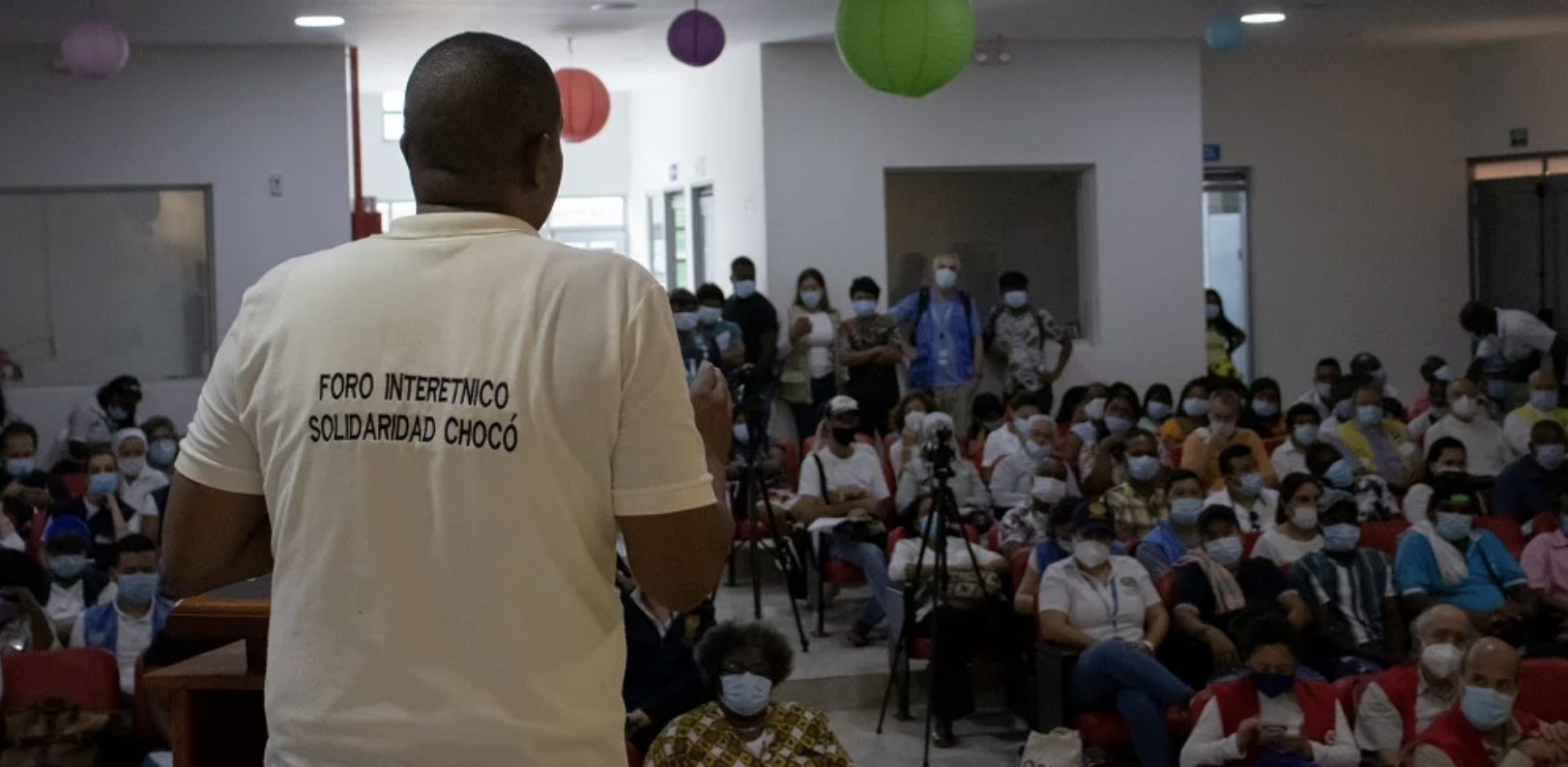 La Comisión para el Esclarecimiento de la Verdad, la Convivencia y la No Repetición (CEV), la Unidad de Búsqueda de Personas dadas por Desaparecidas (UBPD) y la Jurisdicción Especial para la Paz (JEP), junto con delegados de más de 20 instituciones regionales y organismos internacionales, escucharon por parte de representantes de los Consejos Comunitarios de ACABA, ACADESAN y COCOMACIA, de la Mesa de Concertación Indígena, del Foro Interétnico Solidaridad Chocó y del Comité de Víctimas del 2 de Mayo la grave crisis humanitaria que se vive en el Chocó. En estos relatos se presentaron denuncias sobre confinamiento y desplazamiento de comunidades afro e indígenas debido a las disputas de control territorial que existen entre los grupos armados que están presentes en esta región; así mismo, casos de reclutamiento forzado de menores, violencia sexual, extorsión, precaria presencia estatal, deficiencias en la implementación de lo pactado en el Acuerdo de Paz de 2016 y afectación a la autonomía territorial de las comunidades étnicas.
